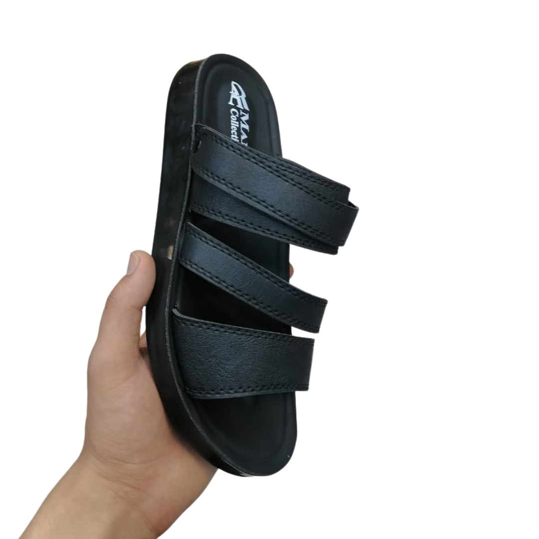 Made from best-quality rexine, it offers a premium leather-like finish while being lightweight, durable, and easy to maintain. The triple-strap front design provides a comfortable fit, while the soft cushioned footbed ensures all-day ease. A strong anti-slip sole adds stability, making it suitable for daily wear, office use, and casual outings.